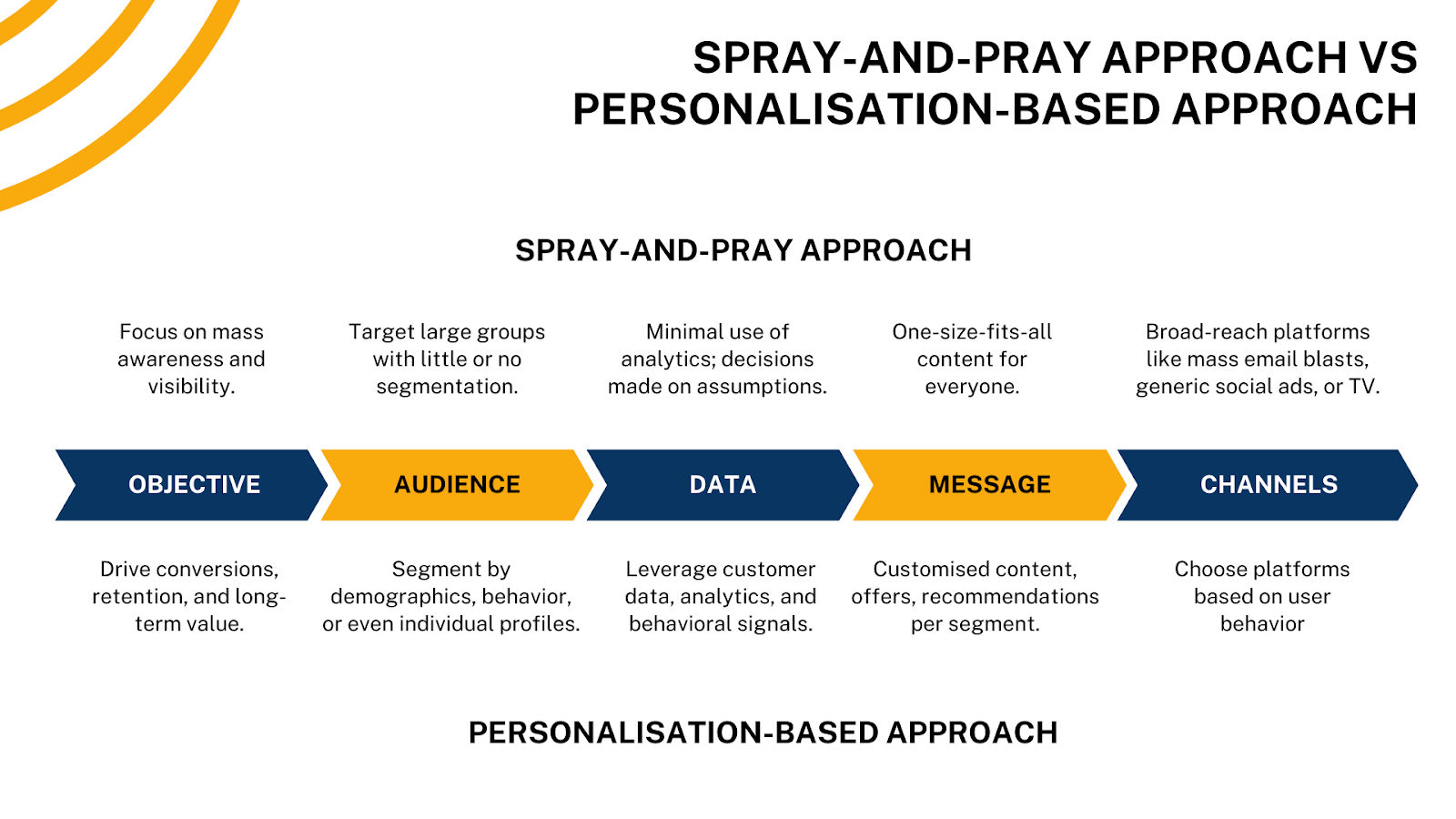 Summary of Differences: Spray and Pray Marketing vs Personalisation-Based Marketing